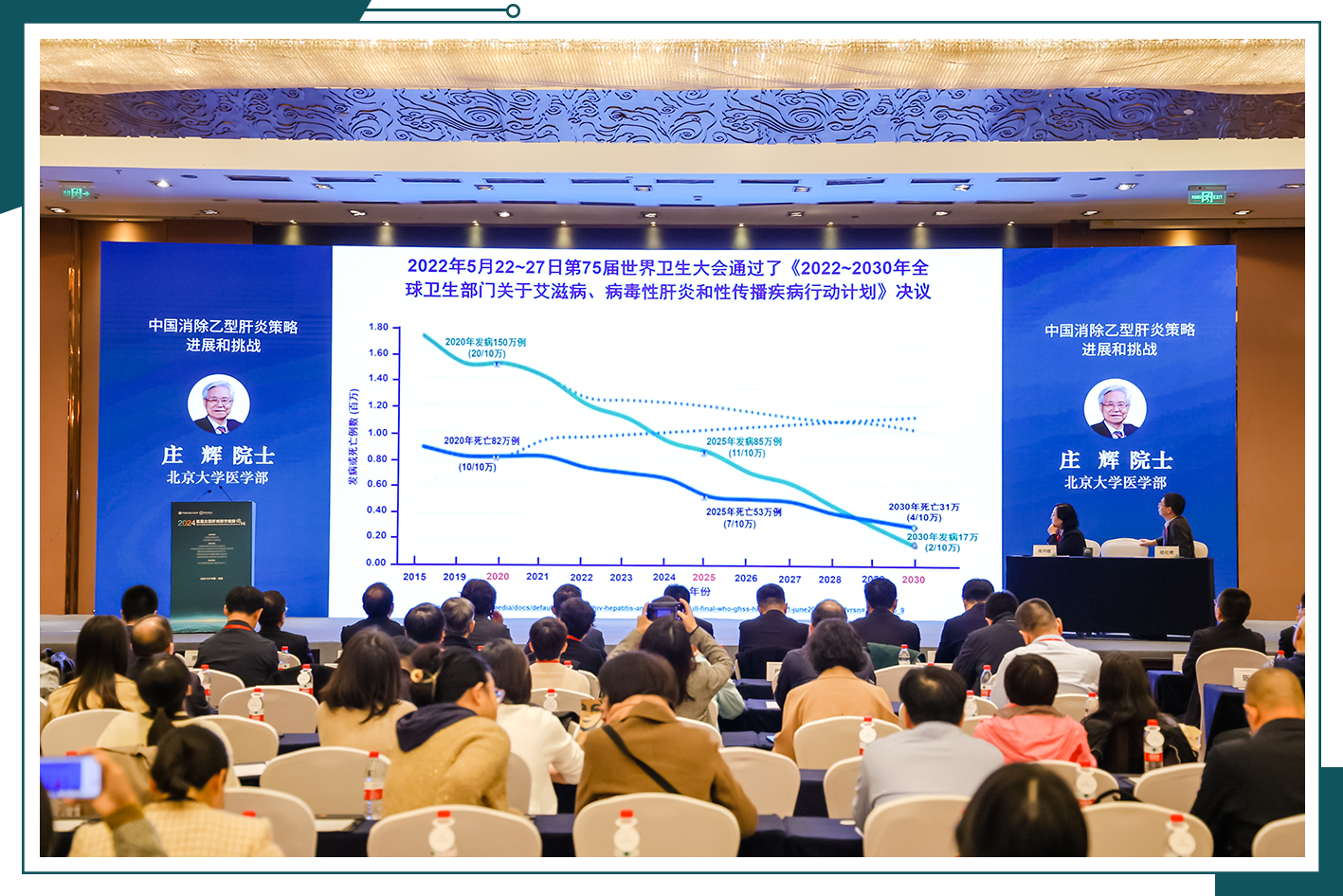 在其中的大会特邀报告环节,中国工程院、北京大学医学院庄辉院士和世界卫生组织驻华代表处技术官员陈仲丹教授,从中国到西太区的视角,对消除乙型肝炎的策略、形势、挑战和前景进行了深度分析和讨论。中国疾病预防控制中心副主任严俊教授介绍了传染病监测预警指挥平台与国家前置监测预警软件部署情况,及其在促进肝病医防协同和扩大慢乙肝筛查诊治方面的突破性作用。