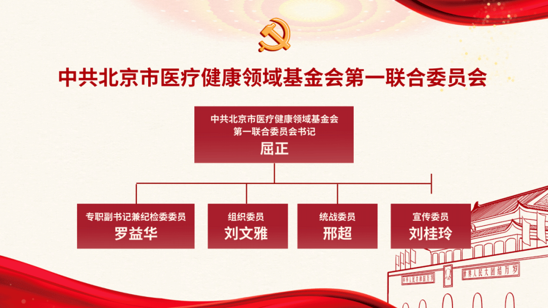 中共北京市医疗健康领域基金会第一联合委员会(简称:北京医联党委)成立于2018年6月27日,北京医联党委的书记单位为北京屈正爱心基金会。党委共设有5名党员,其中书记1名(屈正)、专职副书记兼纪检委员1名(罗益华)、组织委员1名(刘文雅)、宣传委员1名(刘桂玲)、统战委员1名(邢超)。