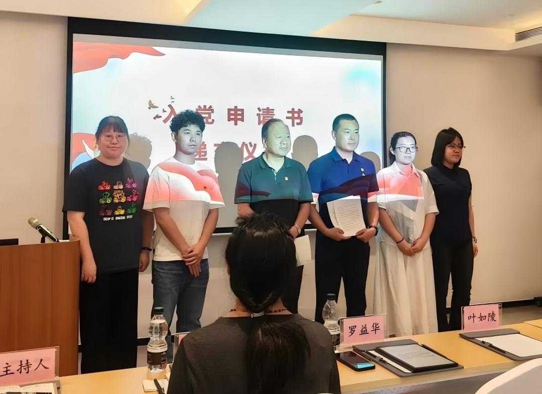在信仰的感召下,北京屈正爱心基金会和北京大爱清尘公益基金会4名入党积极分子在全体党员见证下,郑重向党组织递交入党申请书。