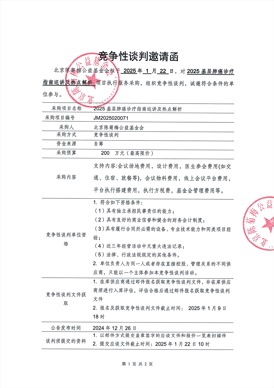 2025基层肺癌诊疗指南巡讲及热点解析项目执行服务采购竞争性谈判邀请