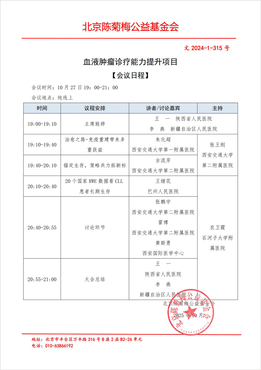 【会议日程】血液肿瘤诊疗能力提升项目10.27