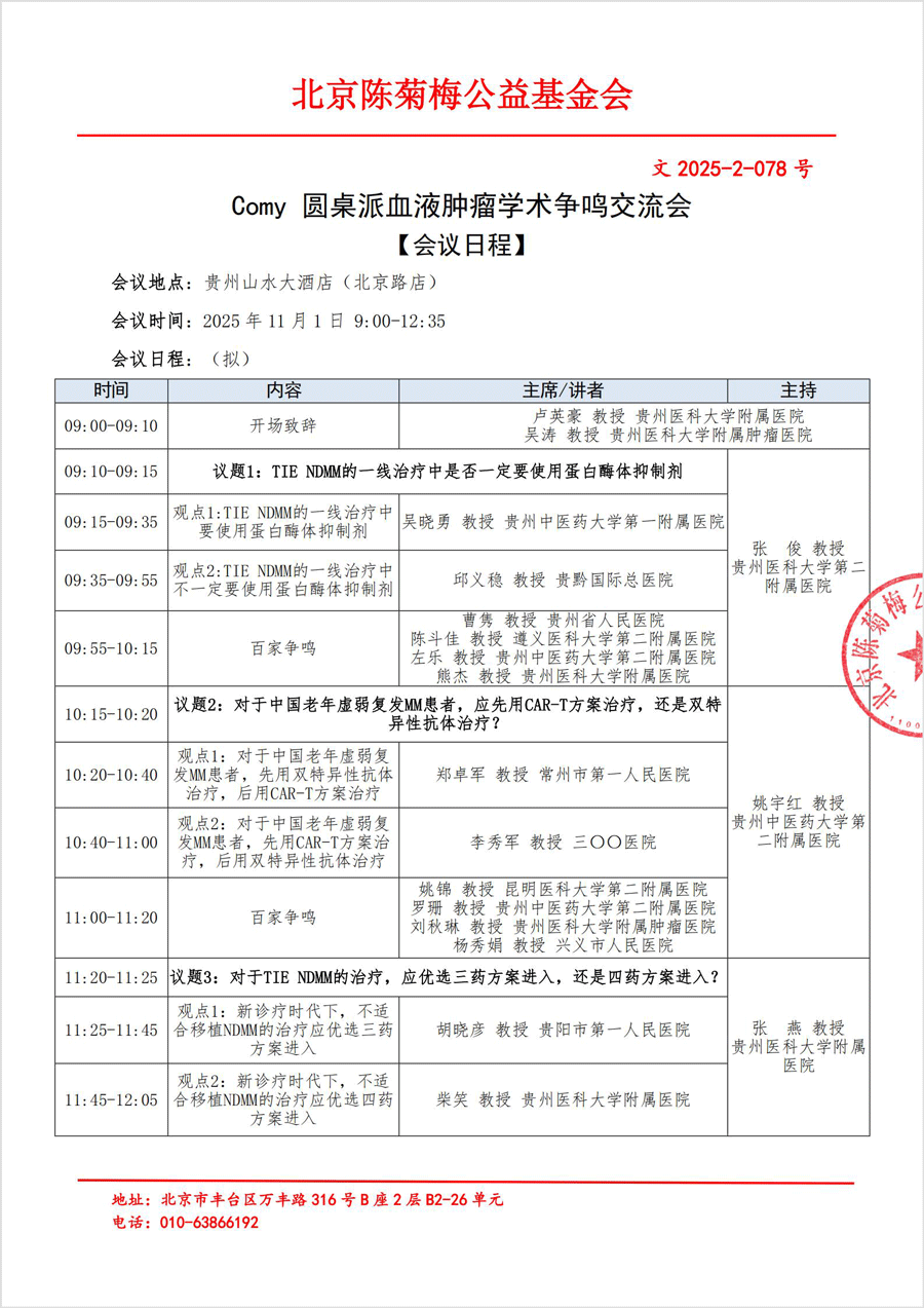 【会议日程】Comy 圆桌派血液肿瘤学术争鸣交流会-11.1贵阳站