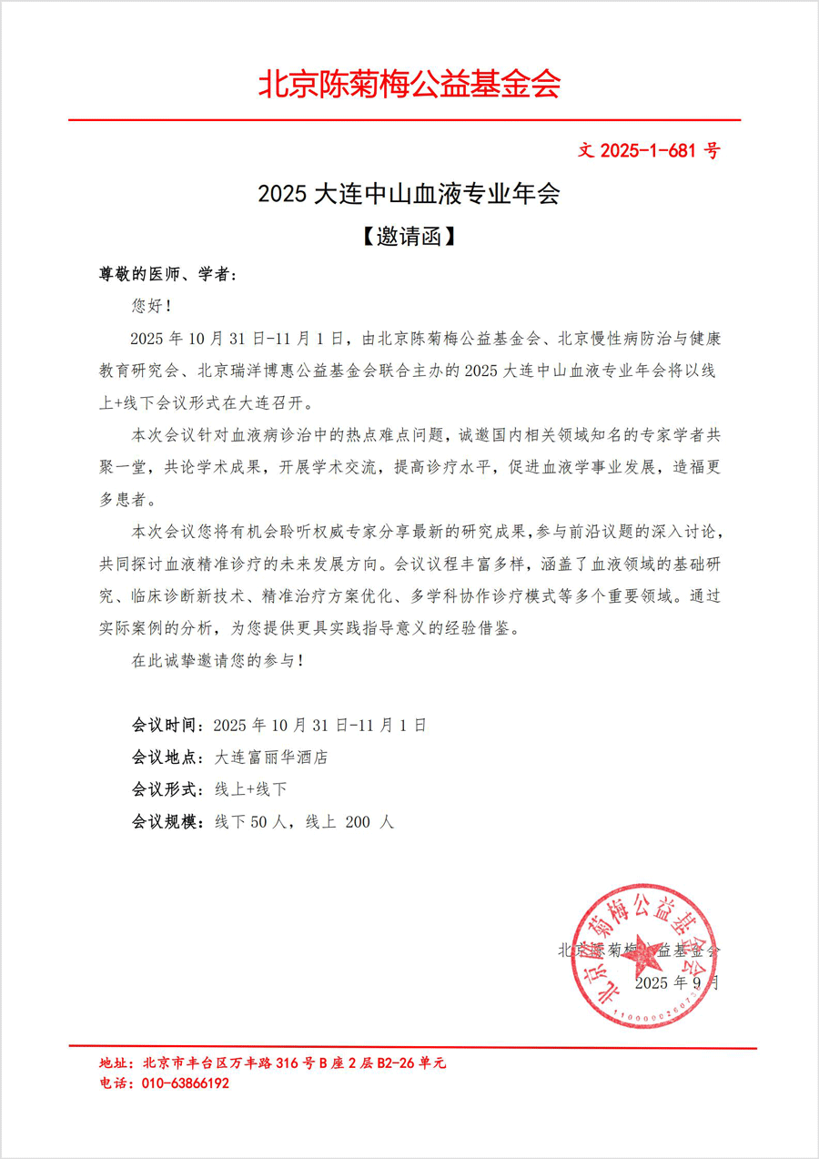 【邀请函】2025大连中山血液专业年会